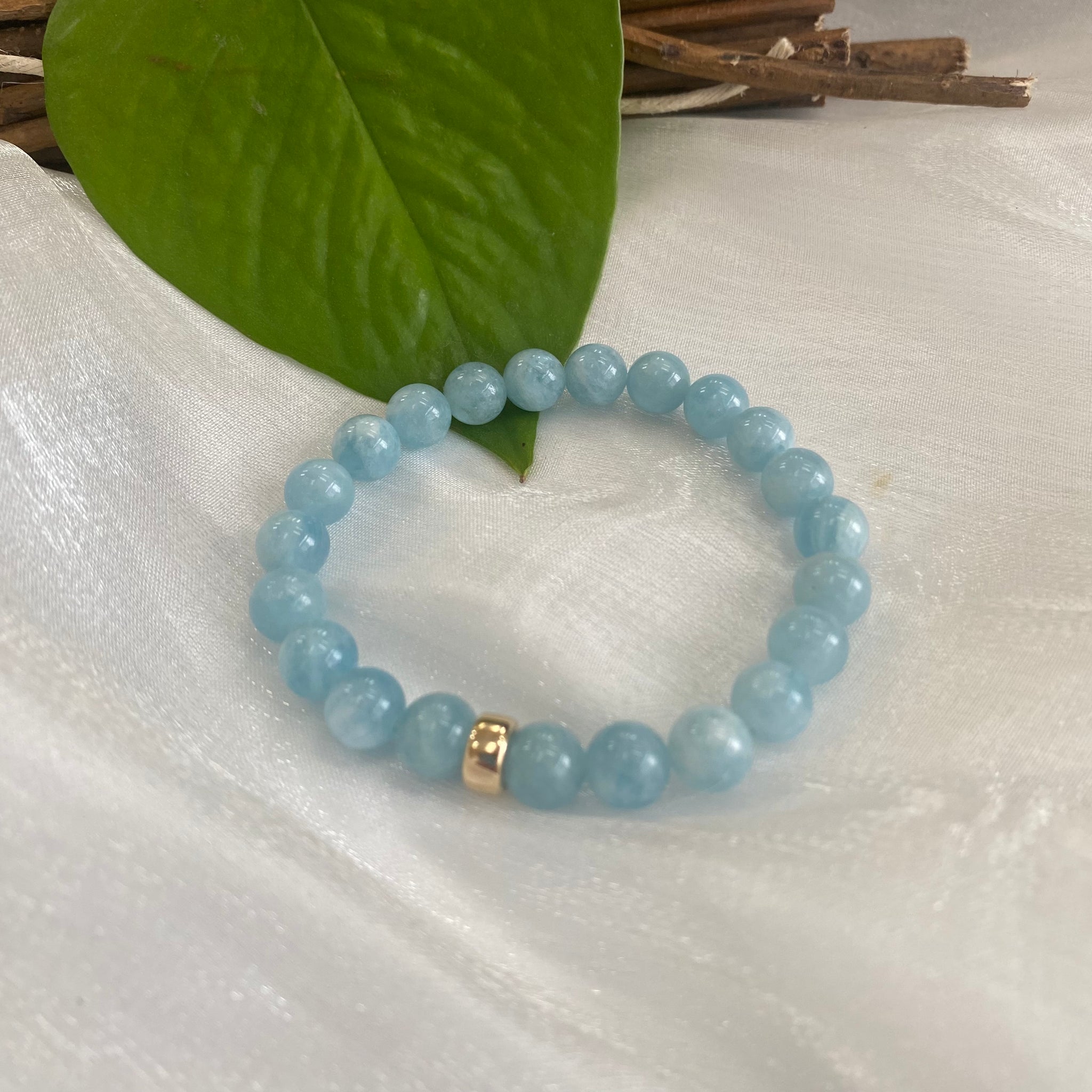 Bring a calming splash of ocean blue to your jewelry collection with this aquamarine stretch bracelet, handcrafted with AAA Aquamarine beads available in 6mm or 8mm. The soft, soothing color of Aquamarine makes this a gentle yet eye-catching accessory, perfect for both everyday wear and special occasions.