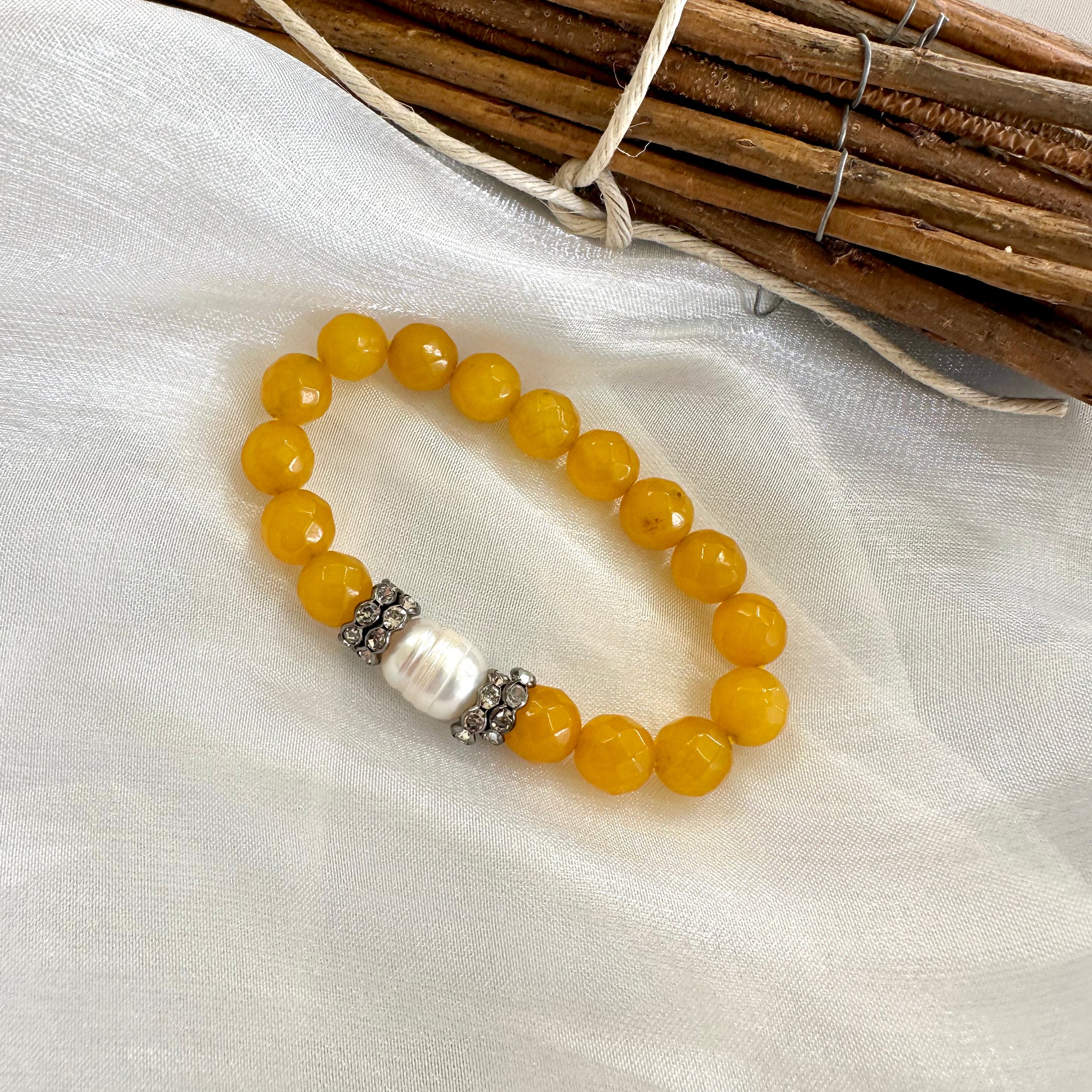 Yellow Jade Pearl Bracelet – Stretch Design Handmade