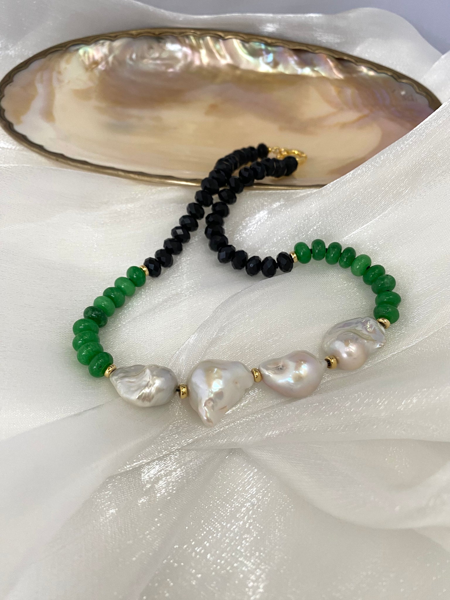 Green Jade Black Tourmaline Short Pearl Necklace – The “ELARA” Design